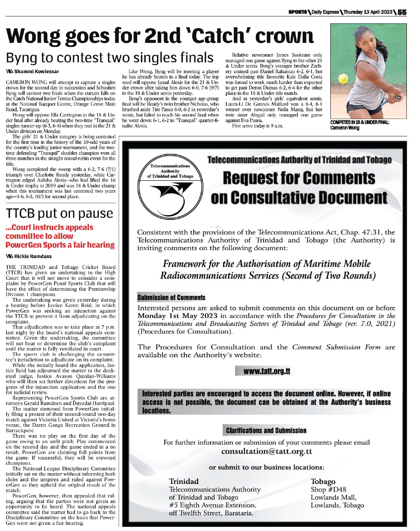 The matter stemmed from PowerGen initially filing a protest of their second-round two-day match against Victoria United at Victoria's home venue, the Daren Ganga Recreation Ground in Barrackpore.