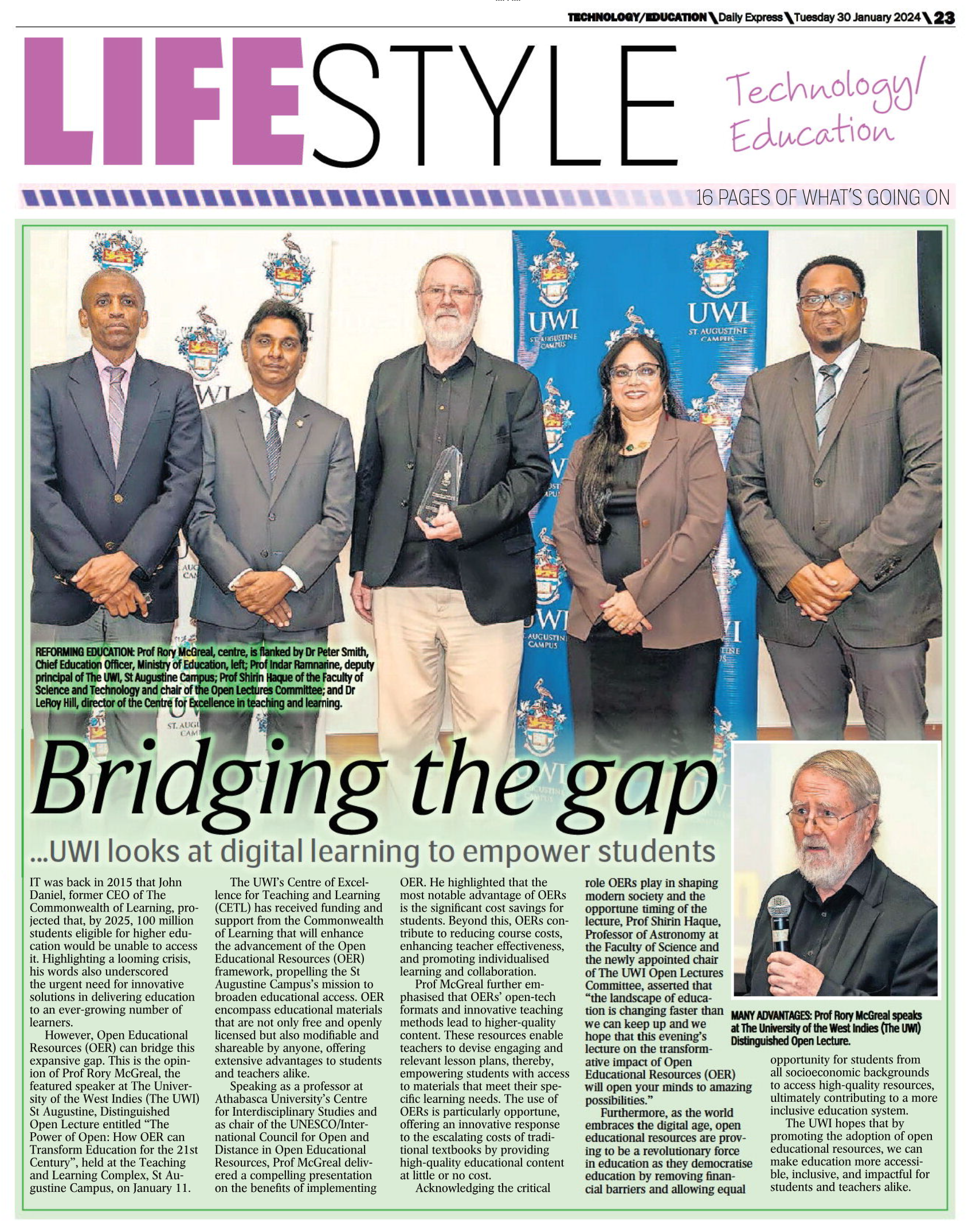 However, Open Educational Resources (OER) can bridge this expansive gap. This is the opinion of Prof Rory McGreal, the featured speaker at The University of the West Indies (The UWI) St Augustine, Distinguished Open Lecture entitled 'The Power of Open: How OER can Transform Education for the 21st Century', held at the Teaching and Learning Complex, St Augustine Campus, on January 11.