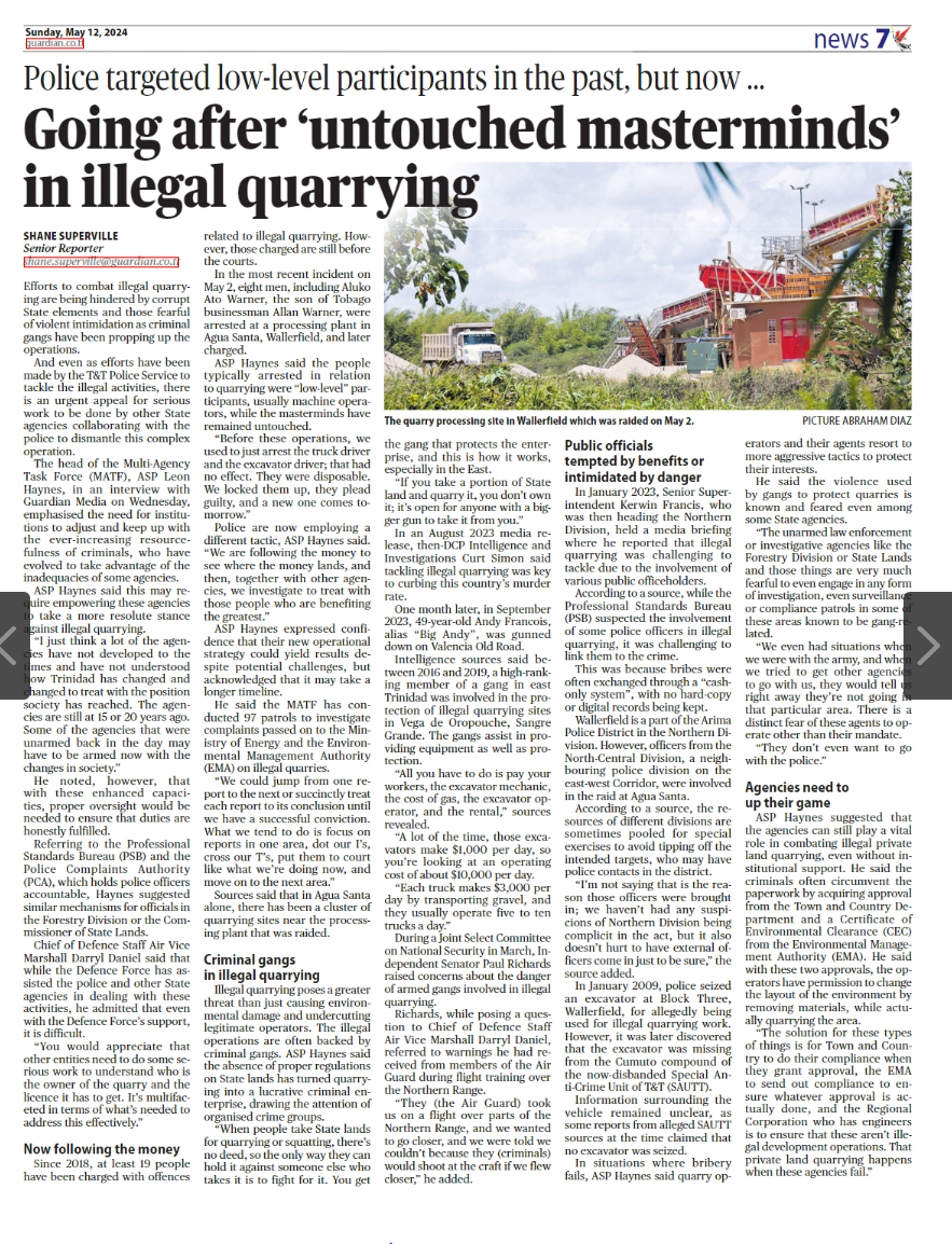 Authority (EMA) on illegal quarries.