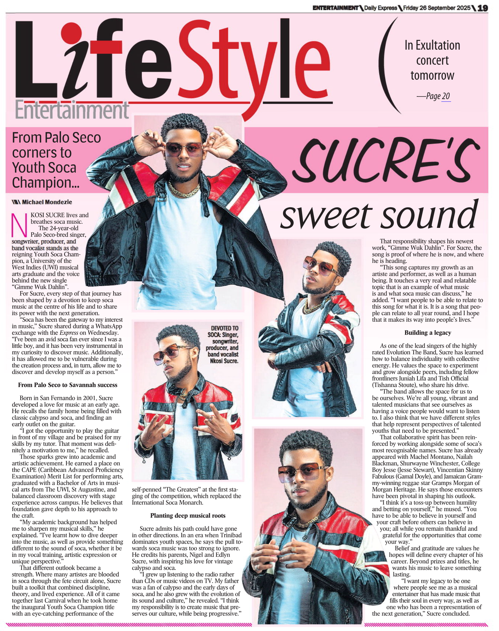 'Soca has been the gateway to my interest in music,' Sucre shared during a WhatsApp exchange with the Express on Wednesday. 'I've been an avid soca fan ever since I was a little boy, and it has been very instrumental in my curiosity to discover music. Additionally, it has allowed me to be vulnerable during the creation process and, in turn, allow me to discover and develop myself as a person.'