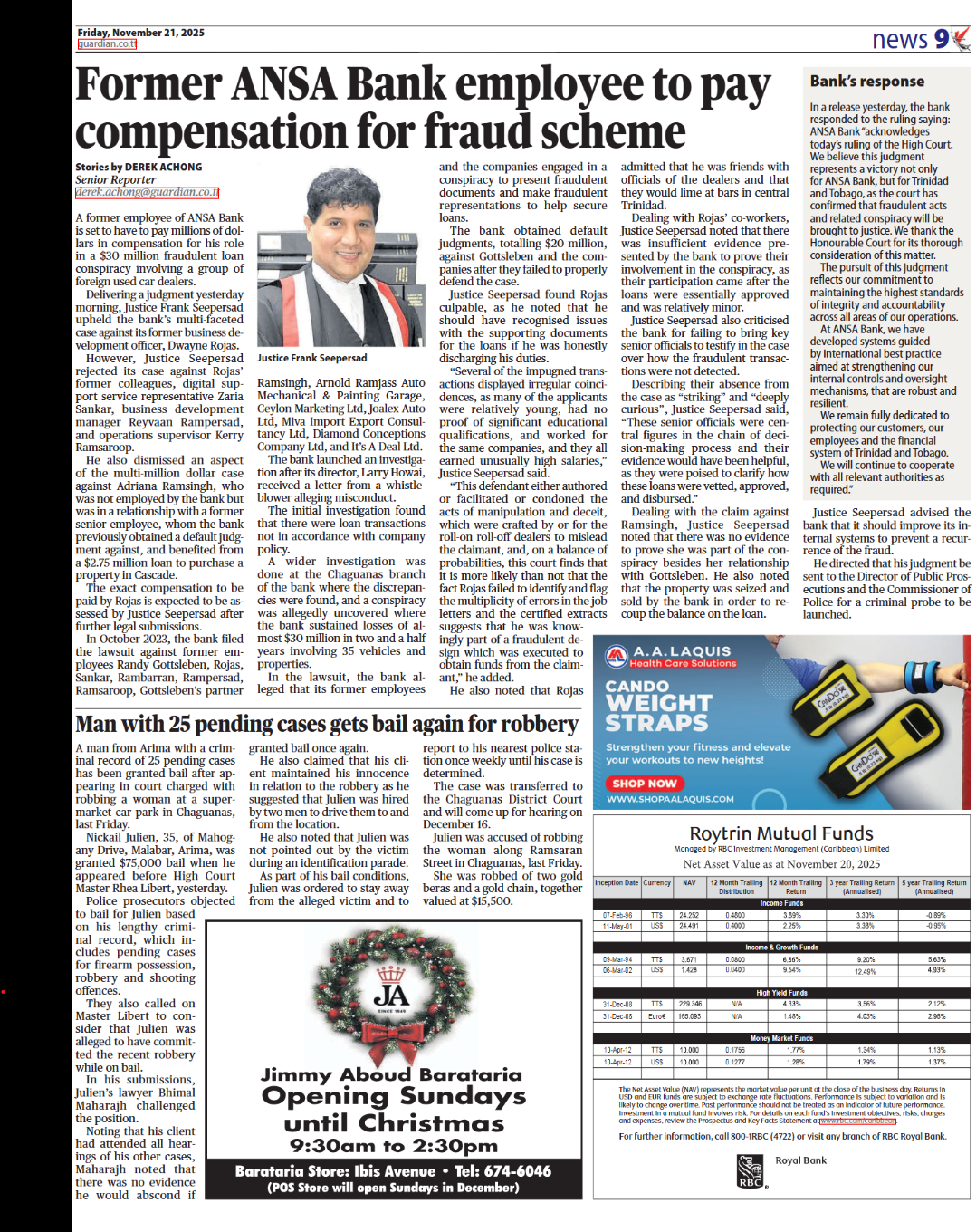 Dealing with the claim against Ramsingh, Justice Seepersad noted